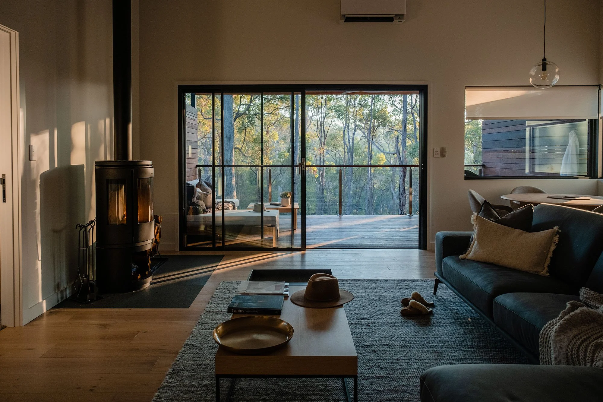 This is bush luxe at its finest. Sumptuously furnished for comfort, intimacy and warmth, offering the region’s premium artisan produce for your relaxed enjoyment. Soak away the day to day stressors of life in the outdoor bath or enjoy a refreshing shower under the stars and retreat by the fire with a glass of red.